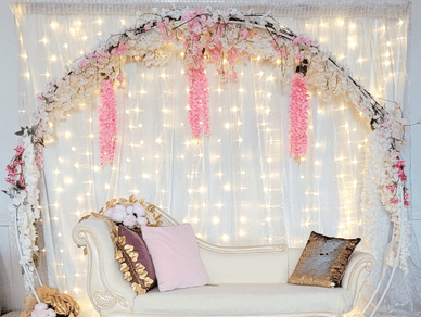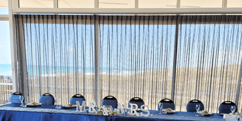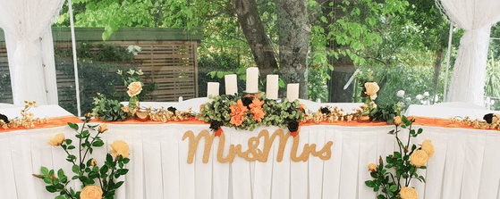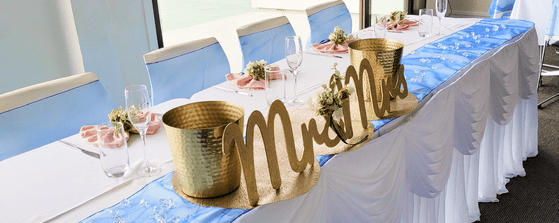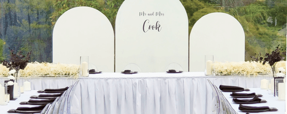 Make your bridal table stand out with our range of MR & MRS signs, personalised letters, table skirting, floral arrangements and table decorations. Add luxury table settings and napkins for the wedding party. Define your background with fairy lights, curtains, an arch, floral details or fabric drapes.