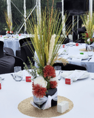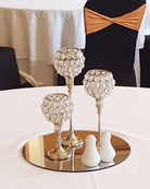 Add flair to your tables with themed centrepieces. We have a huge variety of vases - tall, short, wide, thin, round, straight, clear or frosted. We also have lanterns, crystal lamps, ornaments, mantanzia trees, floral arrangements, candles, table confetti, petals, glass beads, pearl strands, fabric lengths, candle votives, table signs, and more.