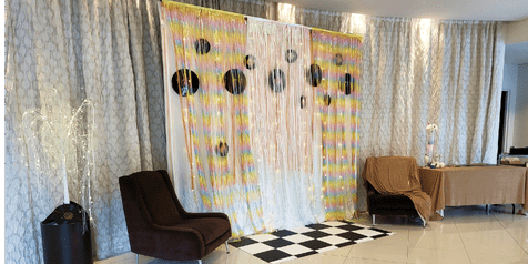 Transform your venue with draping fabric, curtains, wall coverings, bunting and carpets. Add in some pillars, large floral arrangements, themed arches or statement furniture pieces to add interest and define areas.