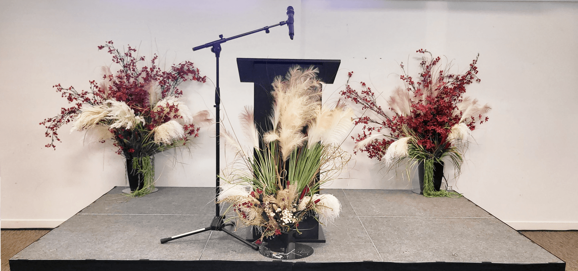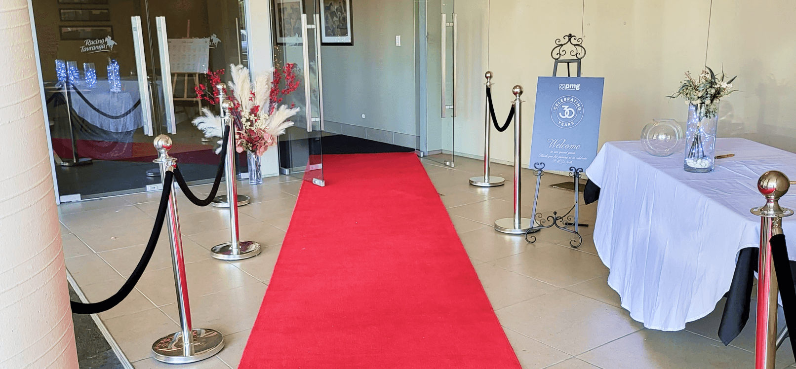 A luscious black-tie affair, held to celebrate 30 years of PMG with shareholders and staff. The racecourse event venue held their 240 guests comfortably. The venue was decorated throughout in a simple, elegant manner, with natural flora elements incorporated. A red-carpet entranceway, stage and dining area were all decorated in theme to add to the ambience.